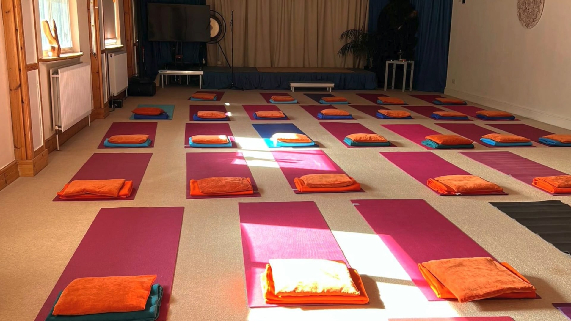 All mats, bolsters, blankets, and equipment are provided in our dedicated meditation and yoga space.